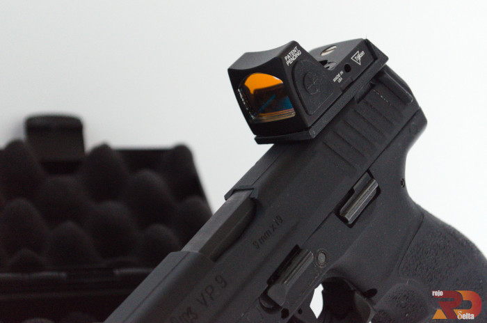 Desde RojoDelta hemos diseñado una base para RMR realizada en 3D con filamento PETG de alta calidad compatible con la réplica HK VP9 de Umarex, sirve para todos aquellos RMR “básico” tipo Trijicom (como el de las fotos).