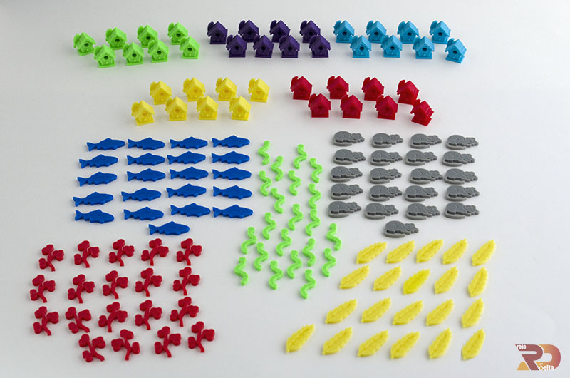 Susituye los contadores de acción de cada jugador por preciosas Casita de Aves en vivos colores y las fichas de cartón originales por detallados Contadores de Alimento con la forma y el color de cada uno de ellos, todo realizado en 3D con una calidad inmejorable que no solo realza la temática del juego sino que también facilita el manejo y visualización de los recursos para todos los jugadores. ¡Siempre tendrás claro cuantas acciones llevas jugadas o qué alimentos quedan en el comedero!